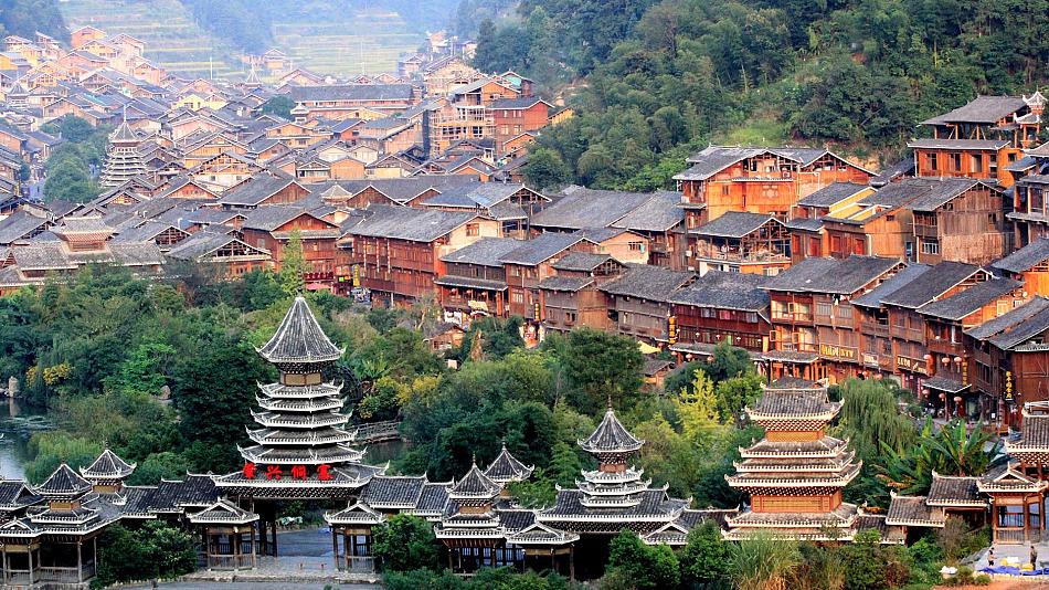 To explore this region further and gain more insight into local ethnic groups, you'll tour several other villages in Zhaoxing. One is Basha Miao Village, "the Last Tribe of Gunmen in China" where the men have kept the custom of tying their hair in braids for centuries. Move on to Zhanli Dong Village to explore its unique marriage customs and magic fertility rule of having only one boy and one girl. After touring Xiaohuang Dong Village, the home of Dong songs, end the day at the original Huanggang Dong Village to experience the most primitive Dong customs.