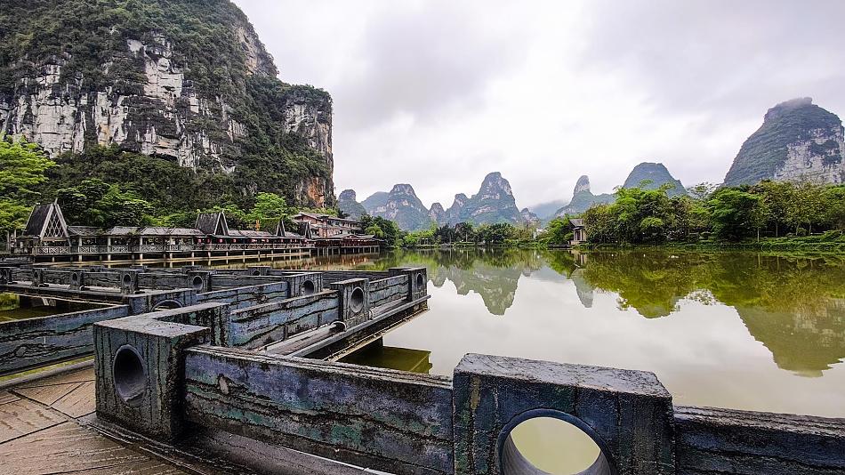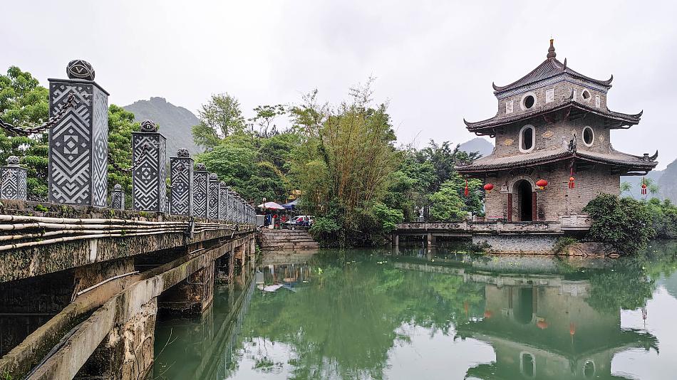 After enjoying the picturesque scenery of the Goose Spring, continue to Jiuzhou which is rich with Zhuang minority flavor and carries a thousand years of civilization. Passing through the old street, you will see the Wenchang Pavilion standing in the green water like an ink painting.